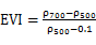 PCA變換的RGB彩色合成,讓我們更客觀地看到不同年份小麥種子在圖像顯示上的差別,為了進一步分析不同年份小麥種子的差別,分別提取不同年份的小麥種子,在提取不同年份小麥種子的基礎(chǔ)上分別提取其均值、標(biāo)準(zhǔn)差等特征,不同年份的小麥種子的均值、標(biāo)準(zhǔn)差變化如圖6所示。從圖6可知,無論是小麥種子的均值或標(biāo)準(zhǔn)差,其不同年份的小麥種子光譜曲線非常一致。從均值來看,在500 nm處不同年份的小麥種子區(qū)分相對明顯;從標(biāo)準(zhǔn)差來看,700 nm處不同年份的小麥種子區(qū)分相對明顯。因此本研究利用這兩波段分別構(gòu)建NDVI和EVI光譜指數(shù),NDVI和EVI的計算公式如下所示: