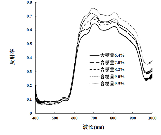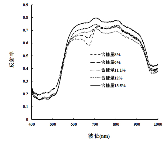 圖5青色甜瓜不同含糖量的光譜曲線差異
