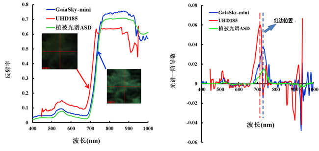 圖4 GaiaSky-mini、UHD185、ASD光譜對(duì)比分析