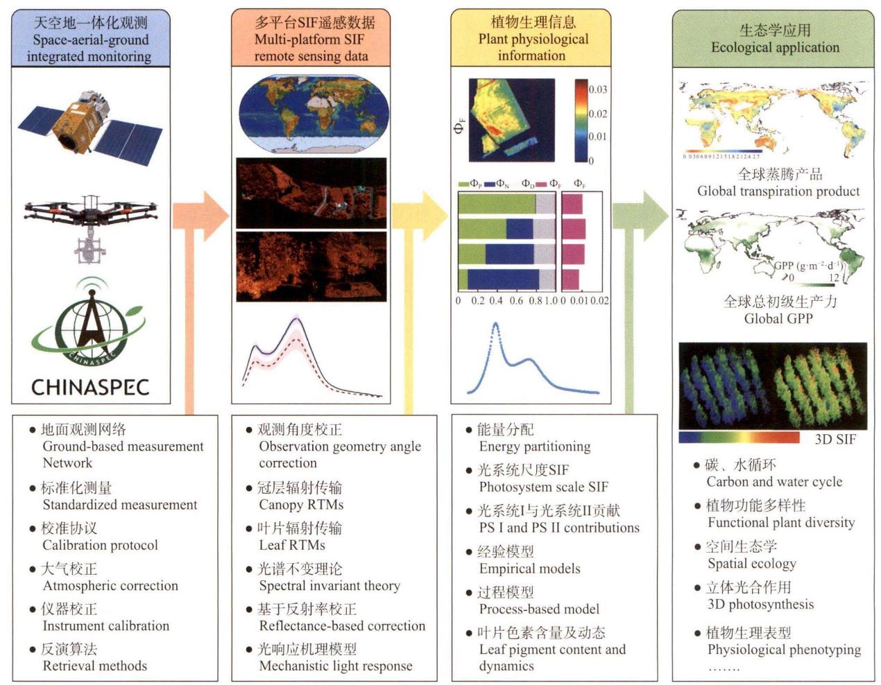 圖6 日光誘導(dǎo)葉綠素?zé)晒?SIF)遙感標(biāo)準(zhǔn)化數(shù)據(jù)處理與建模流程及其在生態(tài)學(xué)中的新興與潛在應(yīng)用(吳霖升,2022)