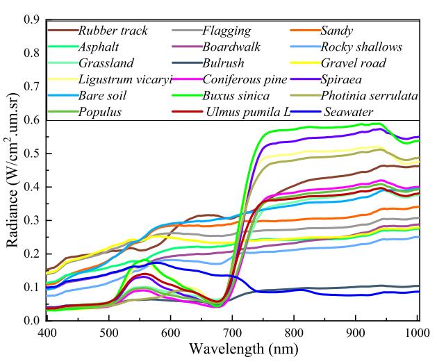 圖 4.:18 個(gè)土地覆蓋類別的平均光譜曲線。