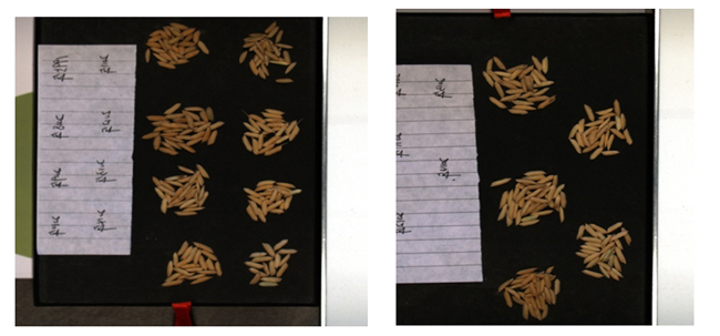 圖3為不同年份的小麥種子的高光譜圖像RGB合成圖。左圖為1995、2008、2009、2010、2011、2012、2013、2014共8年的小麥種子,右圖為2010、2011、2012、2013、2014共5年的小麥種子.