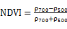 PCA變換的RGB彩色合成,讓我們更客觀地看到不同年份小麥種子在圖像顯示上的差別,為了進一步分析不同年份小麥種子的差別,分別提取不同年份的小麥種子,在提取不同年份小麥種子的基礎(chǔ)上分別提取其均值、標(biāo)準(zhǔn)差等特征,不同年份的小麥種子的均值、標(biāo)準(zhǔn)差變化如圖6所示。從圖6可知,無論是小麥種子的均值或標(biāo)準(zhǔn)差,其不同年份的小麥種子光譜曲線非常一致。從均值來看,在500 nm處不同年份的小麥種子區(qū)分相對明顯;從標(biāo)準(zhǔn)差來看,700 nm處不同年份的小麥種子區(qū)分相對明顯。因此本研究利用這兩波段分別構(gòu)建NDVI和EVI光譜指數(shù),NDVI和EVI的計算公式如下所示: