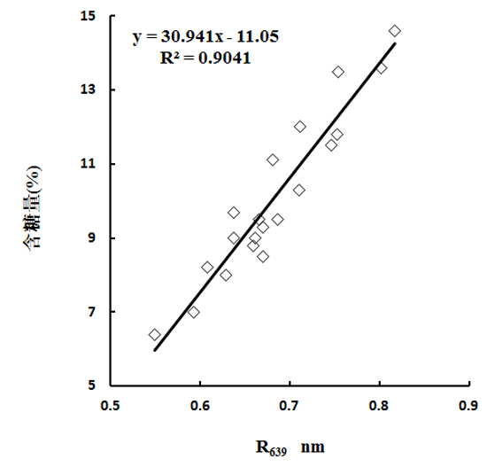 圖10 639.3 nm處的光譜反射率與糖度的模型檢驗