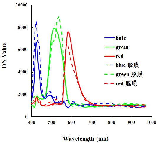 2.1 華為mate7顯微下放大5倍其在脫膜前后紅綠藍三顏色的光譜變化