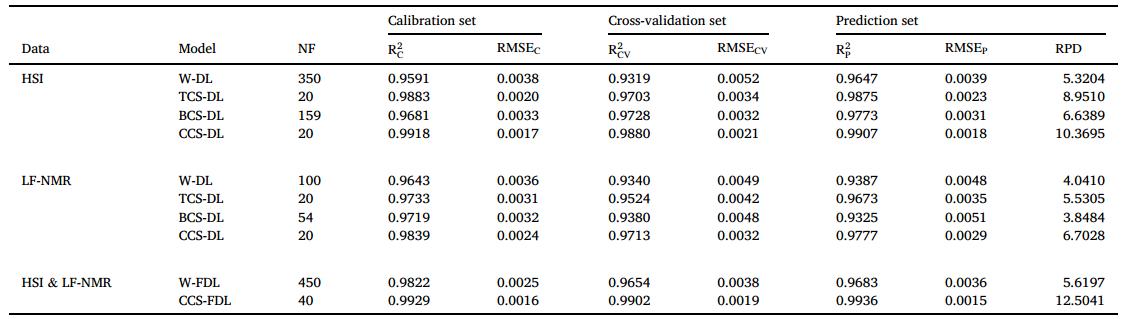 圖10 在HSI和LF-NMR數(shù)據(jù)集中使用CCS提取特征的FDL模型的預(yù)測(cè)結(jié)果