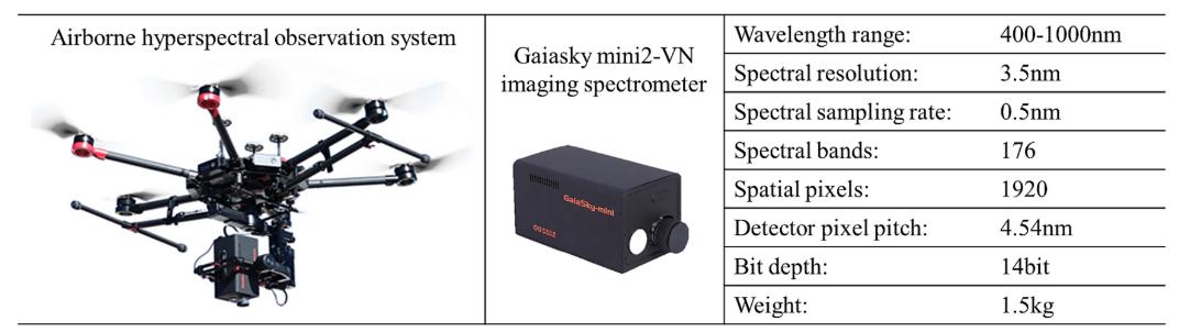 圖2:無人機(jī)機(jī)載高光譜觀測(cè)系統(tǒng)及Gaiasky mini2-VN成像光譜儀參數(shù)