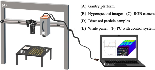 目前,傳統(tǒng)的病害監(jiān)測方法主要依賴于人工目測,這種方法不僅主觀性強、費時費力,而且難以在早期階段準確識別受感染的穗粒,尤其是當病害程度較輕時,在田間環(huán)境下難以肉眼察覺。相比之下,遙感技術(shù),特別是高光譜成像技術(shù)(HSI),提供了一種高效、無損的病害監(jiān)測手段。已有研究表明,高光譜遙感可用于檢測多種作物病害,并能夠在病害出現(xiàn)肉眼可見癥狀前提供早期預警。然而,目前大部分研究集中在葉部病害檢測上,針對水稻穗部病害的研究較少。由于穗粒的三維形態(tài)結(jié)構(gòu)復雜,傳統(tǒng)的非成像光譜儀難以精確觀測其光譜特征,而高光譜成像技術(shù)結(jié)合近距離成像光譜則能夠獲取穗部的空間和光譜信息,從而提高病害監(jiān)測的精度。