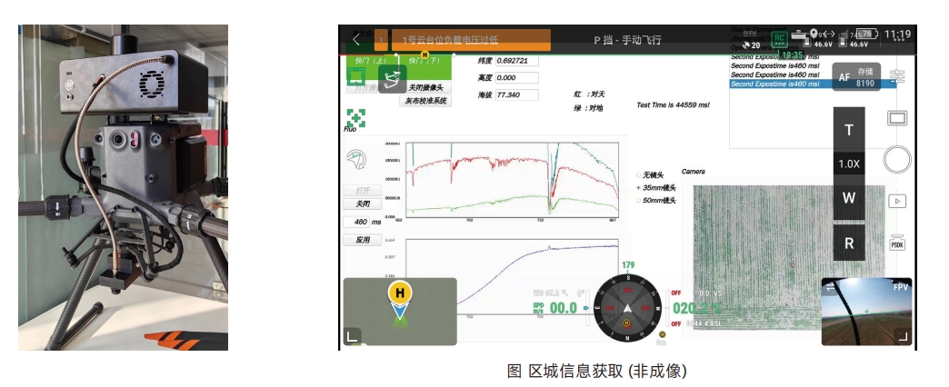 模塊化集成,結構標準化,無需調試、調整系統(tǒng)結構,只需按照要求安裝在無人機上即可,通過無線圖傳數據線實現系統(tǒng)與無人機、地面監(jiān)控平臺的互通。通過無人機云臺給系統(tǒng)提供獨立的供電。下行光纖與獨立模塊固定便于成像鏡頭的切換,輔助相機集成在獨立模塊上, 以便觀察、監(jiān)控采集區(qū)域。上行余弦校正功能實現模塊化,實時采集太陽光照信號,其透過率高,勻化效果好,適應波段范圍廣。GPS 信息可以精準定位采集區(qū)域的位置信息。
